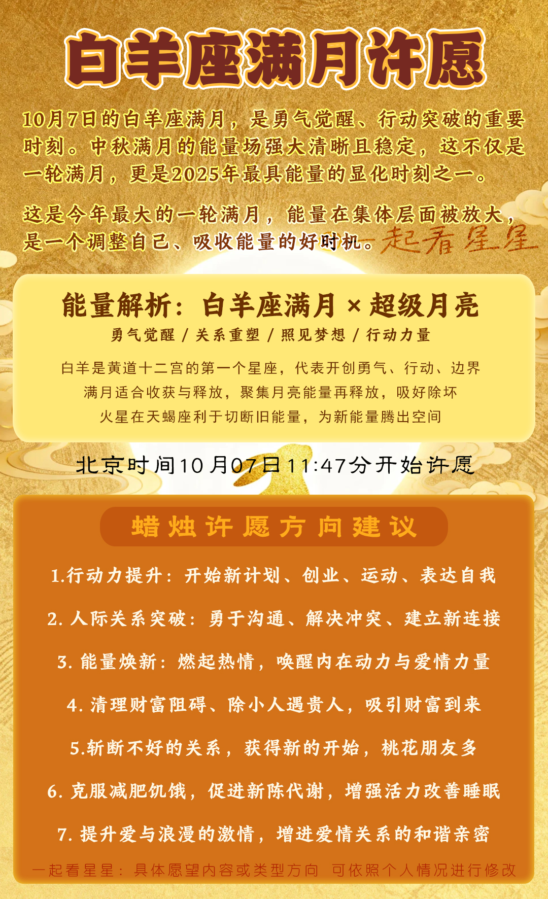 【满月许愿指南】–2025年10月7日白羊座满月许愿指南&注意事项